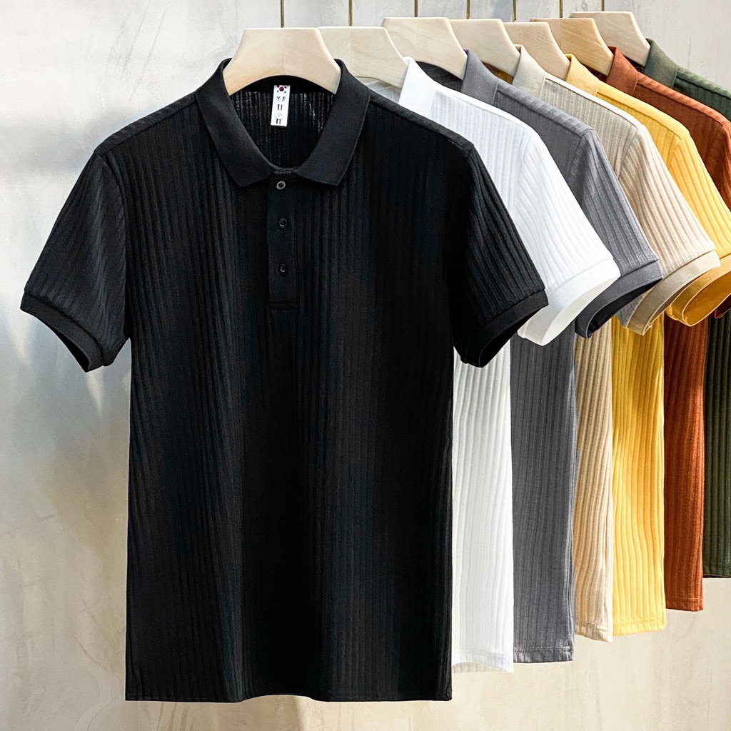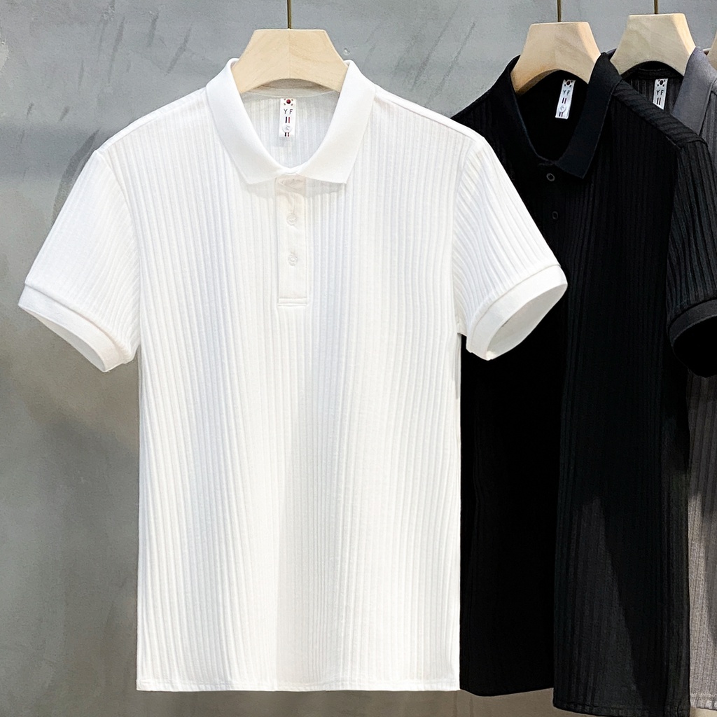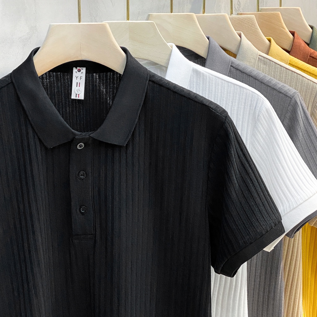 Pit Stripes Mercerized Knitted polo Shirt Half-Sleeved Street Wear Summer Top Trendy Lapel Men