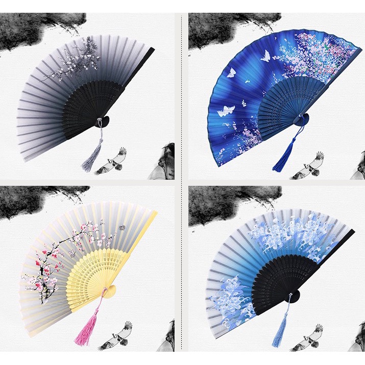 Ready stock Chinese Style Vintage Bamboo Folding Hand Held Flower Fan Chinese Dance Party Pocket