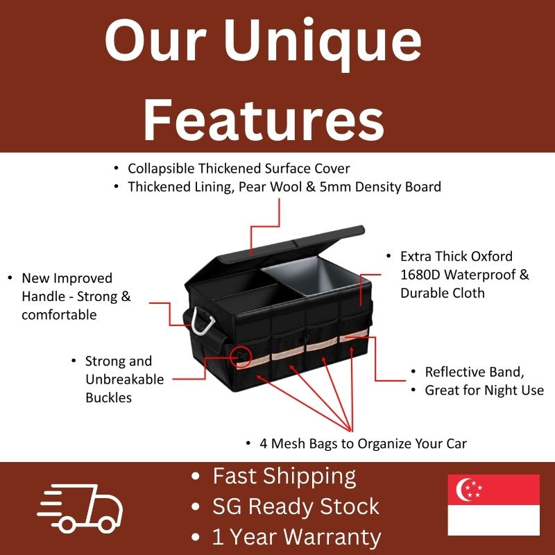 【SG STOCK] Waterproof Car Boot Organizer Foldable Storage Container Trunk Accessories. Collapsible
