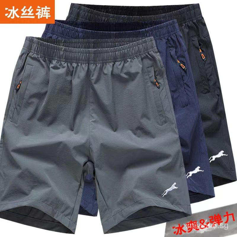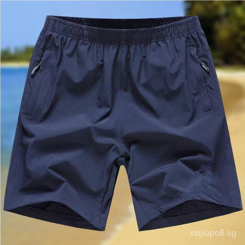 Shorts Summer Stretch Ice Silk Quick-Drying Beach Pants Men's Large Trunks Five Points Breathable plus Size Casual Loose Sports Umjr
