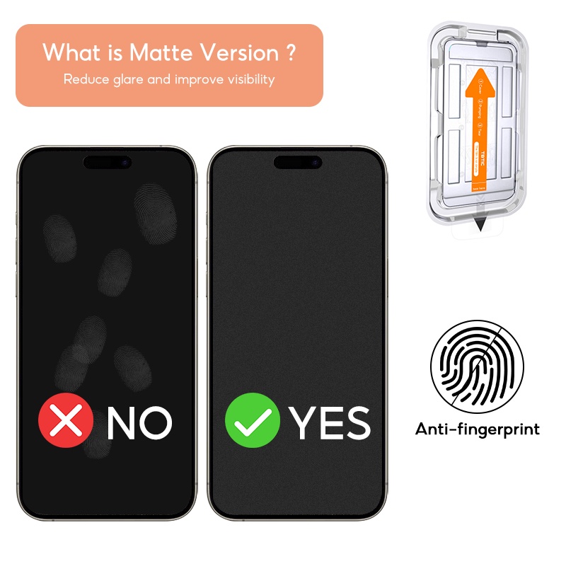 TBTIC For iPhone Screen Protector Tempered Glass 15 14 13 12 11 Pro Max Plus XR X Xs HD Matte Privacy Fingerprint Blueray Green Light With Auto Alignment Easy Install Full Coverage