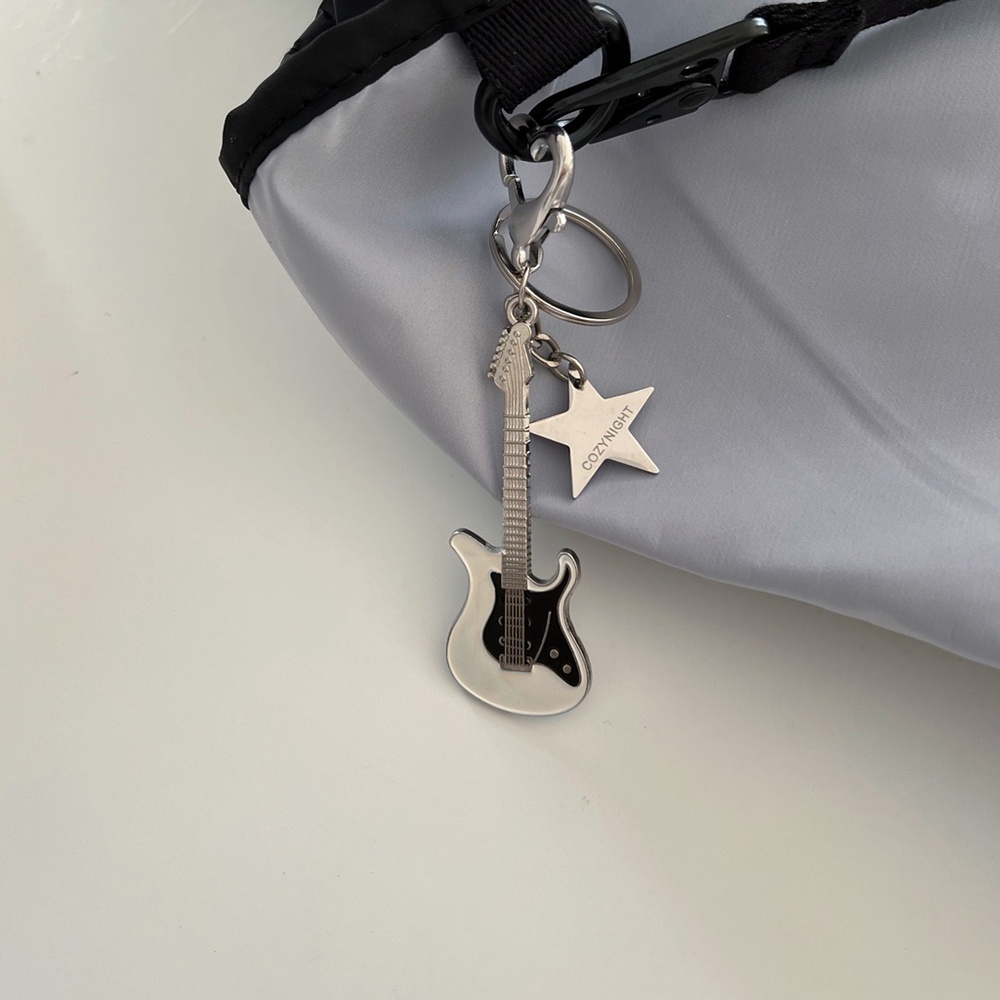 Y2K Vintage Sweet Cool Guitar Pentagram Star Pendant Keychain Millennium Bag Couples Ornament